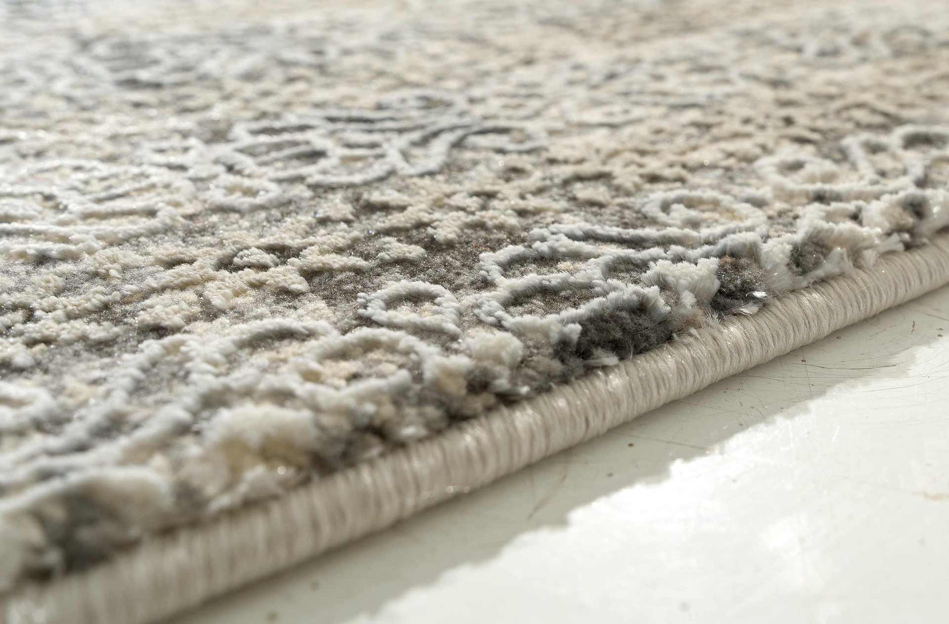 Η νέα σειρά χαλιών Kosmos με συνδιασμό γκρι και καφέ σε σβησμένα κλασικά και μοντέρνα σχέδια, συνοδεύει άψογα τις τελευταίες τάσεις των δωματίων, καθώς ταιριάζουν και σε χώρους όπου επικρατούν είτε καφέ είτε γκρι χρώματα. Ο συνδιασμός του πολυεστερικού πέλους και του ‘λιωμένου’ πολυέστερ (γνωστό ως shrink polyester) προσδίδει στο χαλί την αίσθηση του ανάγλυφου.