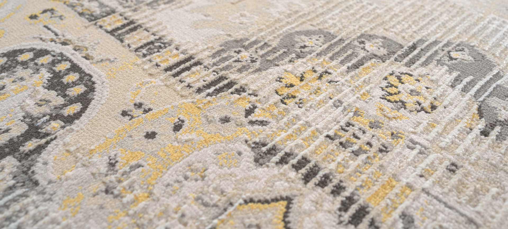 Η νέα σειρά χαλιών Kosmos με συνδιασμό γκρι και καφέ σε σβησμένα κλασικά και μοντέρνα σχέδια, συνοδεύει άψογα τις τελευταίες τάσεις των δωματίων, καθώς ταιριάζουν και σε χώρους όπου επικρατούν είτε καφέ είτε γκρι χρώματα. Ο συνδιασμός του πολυεστερικού πέλους και του ‘λιωμένου’ πολυέστερ (γνωστό ως shrink polyester) προσδίδει στο χαλί την αίσθηση του ανάγλυφου.