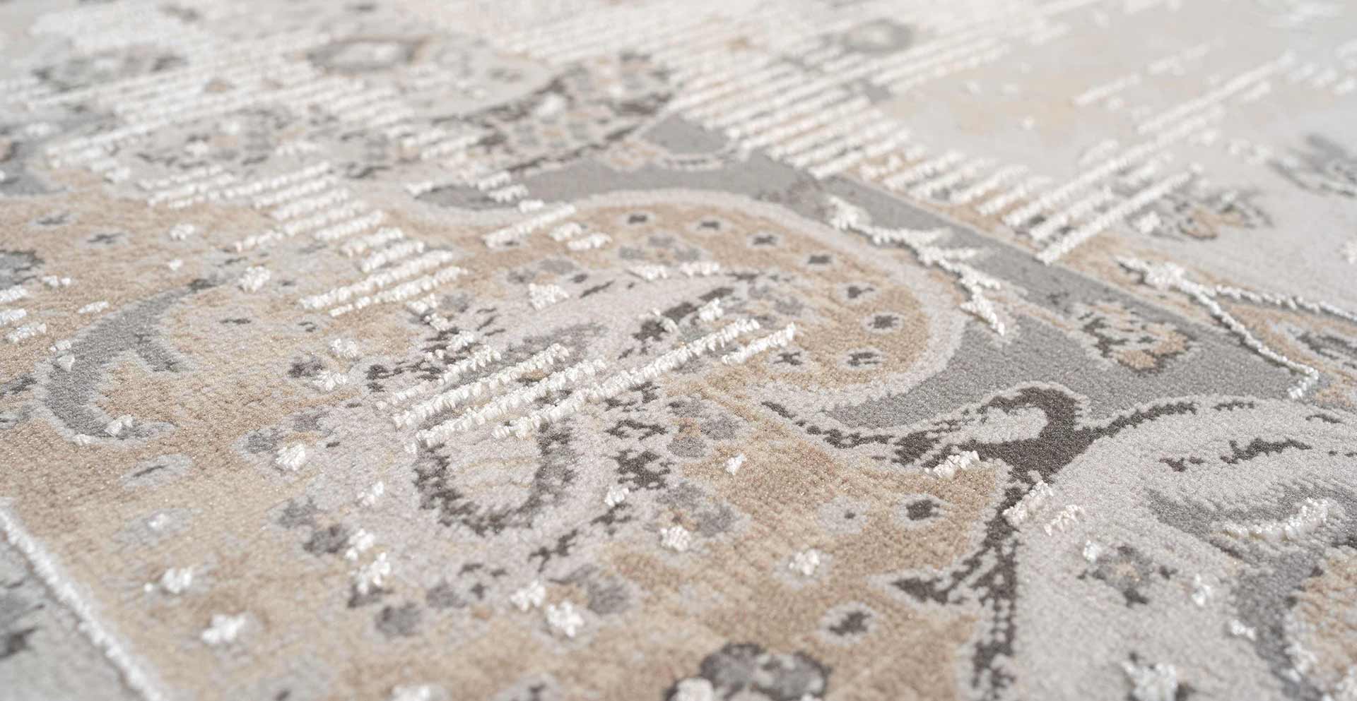 Η νέα σειρά χαλιών Kosmos με συνδιασμό γκρι και καφέ σε σβησμένα κλασικά και μοντέρνα σχέδια, συνοδεύει άψογα τις τελευταίες τάσεις των δωματίων, καθώς ταιριάζουν και σε χώρους όπου επικρατούν είτε καφέ είτε γκρι χρώματα. Ο συνδιασμός του πολυεστερικού πέλους και του ‘λιωμένου’ πολυέστερ (γνωστό ως shrink polyester) προσδίδει στο χαλί την αίσθηση του ανάγλυφου.