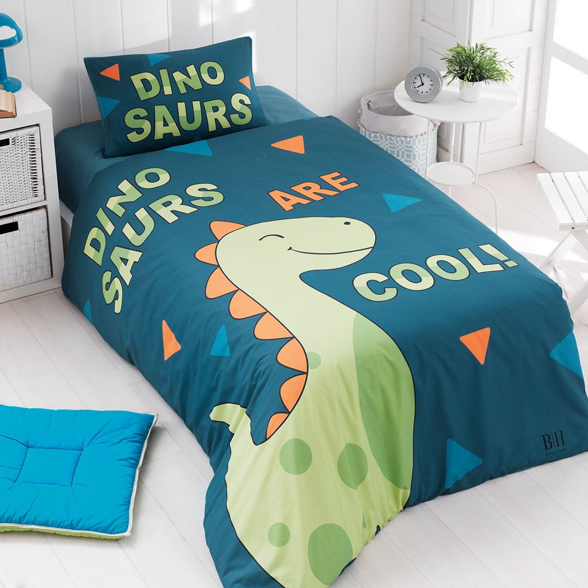 Σετ σεντόνια μονά Dinosaurs. Το σετ περιλαμβάνει 1 τεμάχιο πανωσέντονο σε διάσταση 165×240 , 1 τεμάχιο κατωσέντονο σε διάσταση 165×240 και 1 τεμάχιο μαξιλαροθήκη σε διάσταση 50×70 .Η ποιότητά του είναι cotton 100%