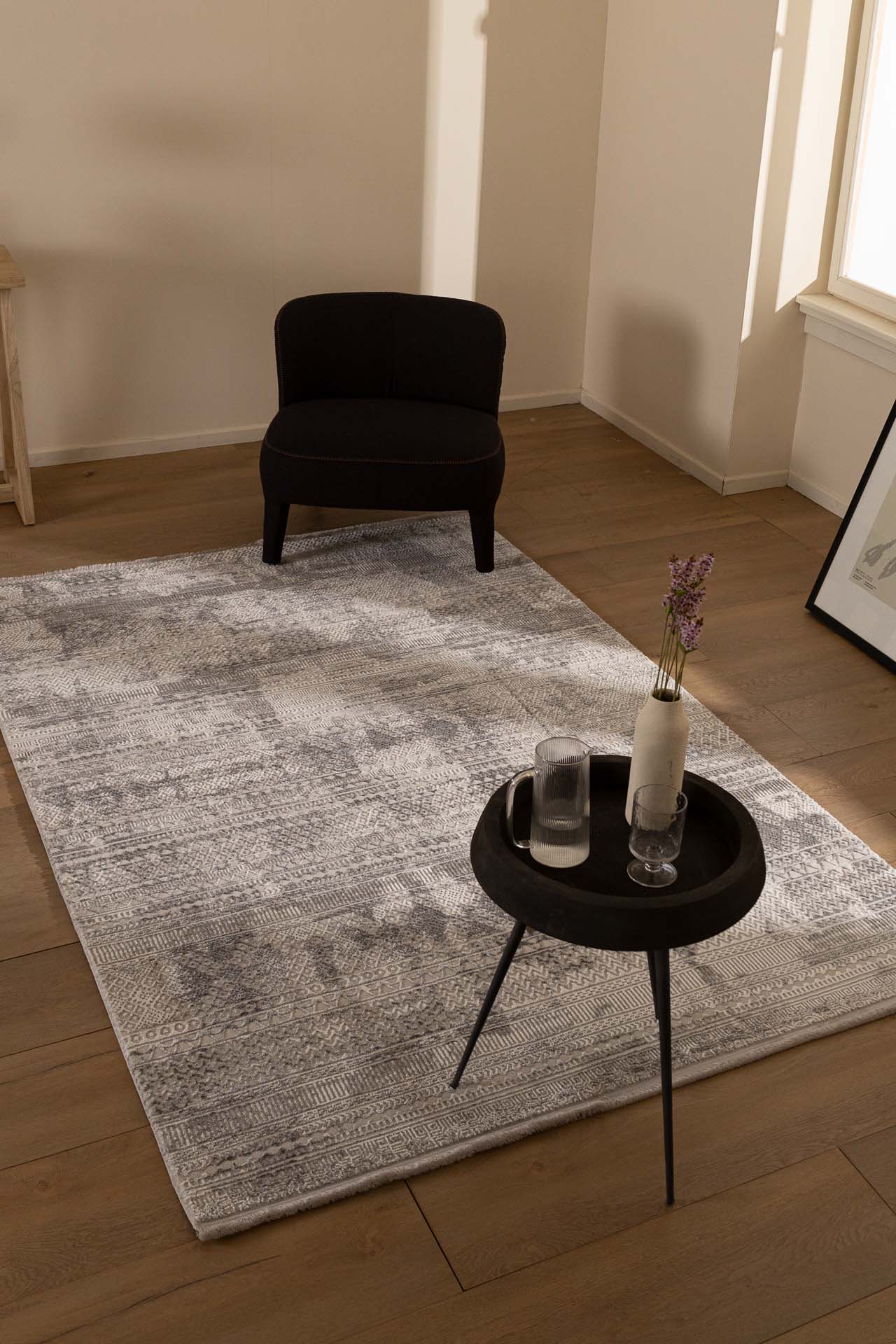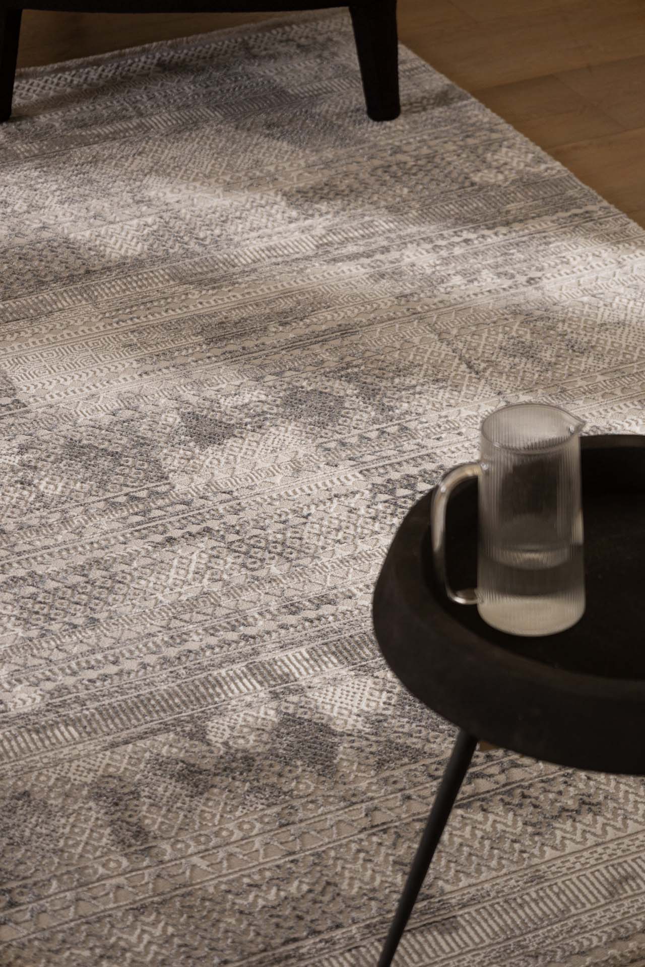 Μοναδικό χαλί μηχανής με χαρακτηριστικά σχέδια χειροποίητων χαλιών. Το ιδιαίτερο τελείωμα του χωρίς ρέλι, καθώς και η κατασκευή από ποιοτικά νήματα, συμβάλλουν στην άριστη ποιότητα του χαλιού. Σε αποχρώσεις γκρι, μπεζ και μπλε σε μοντέρνα και κλασσικά σχέδια είναι η ιδανική πρόταση για τη διακόσμηση του χώρου σας.