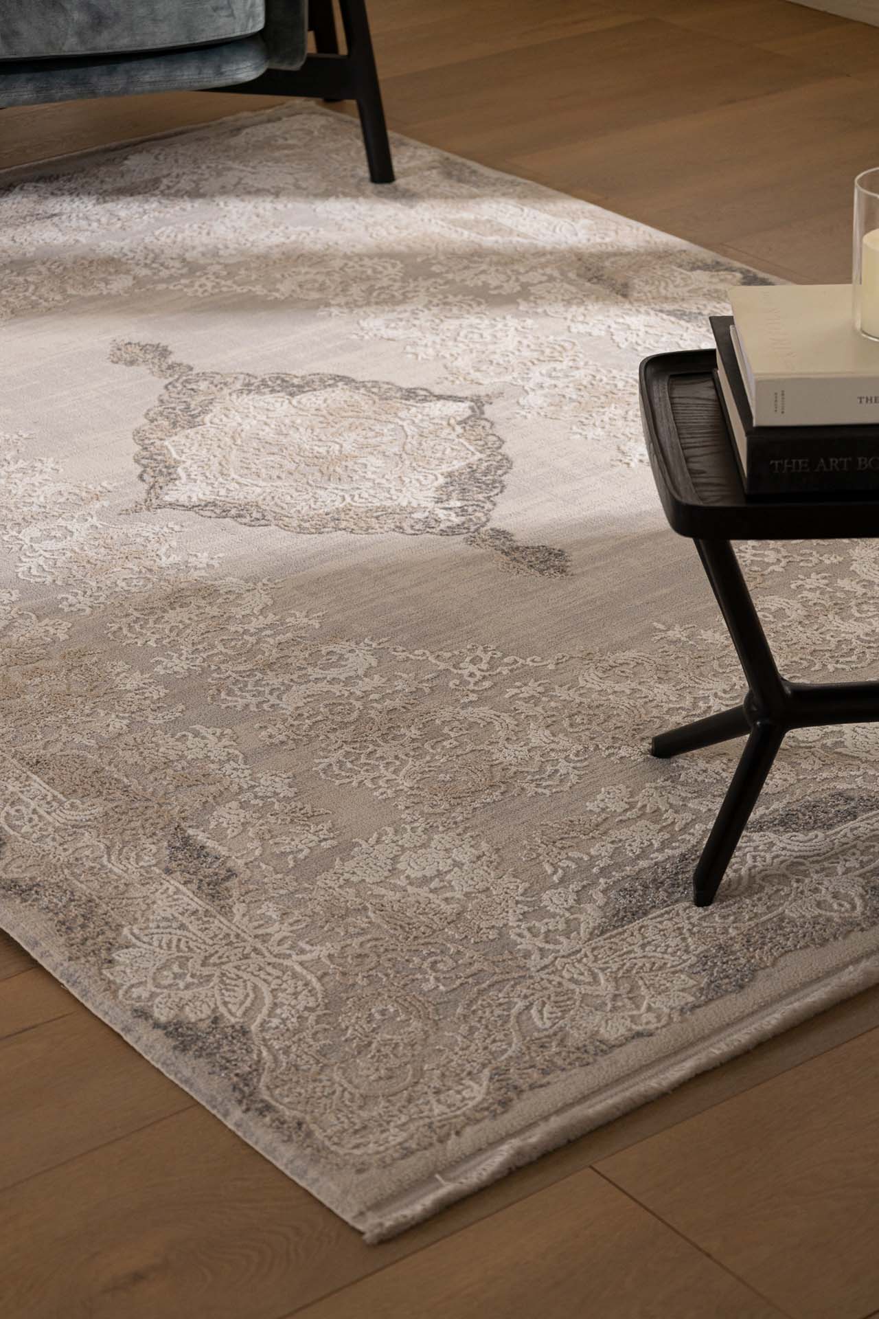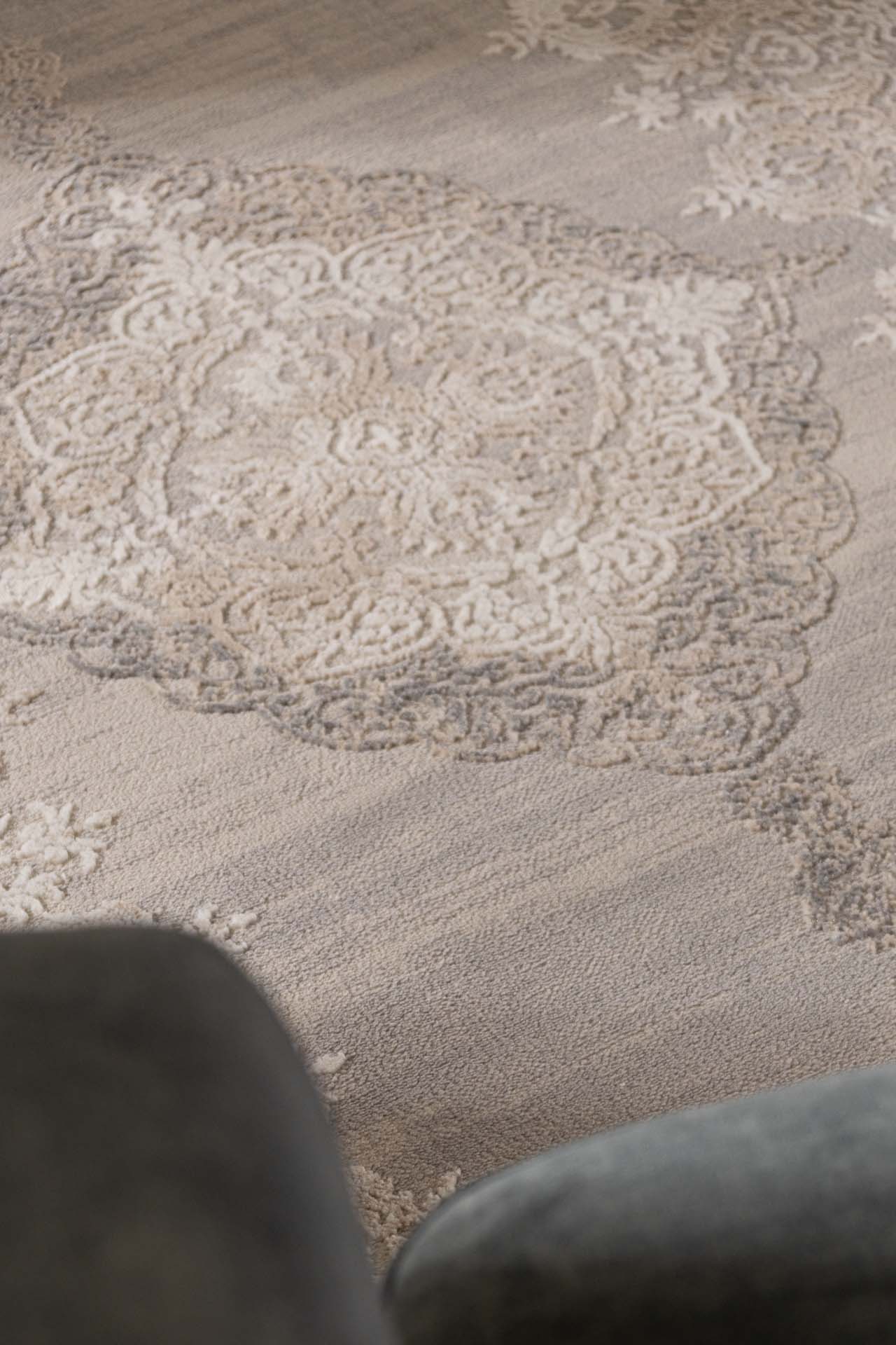 Μοναδικό χαλί μηχανής με χαρακτηριστικά σχέδια χειροποίητων χαλιών. Το ιδιαίτερο τελείωμα του χωρίς ρέλι, καθώς και η κατασκευή από ποιοτικά νήματα, συμβάλλουν στην άριστη ποιότητα του χαλιού. Σε αποχρώσεις γκρι, μπεζ και μπλε σε μοντέρνα και κλασσικά σχέδια είναι η ιδανική πρόταση για τη διακόσμηση του χώρου σας.