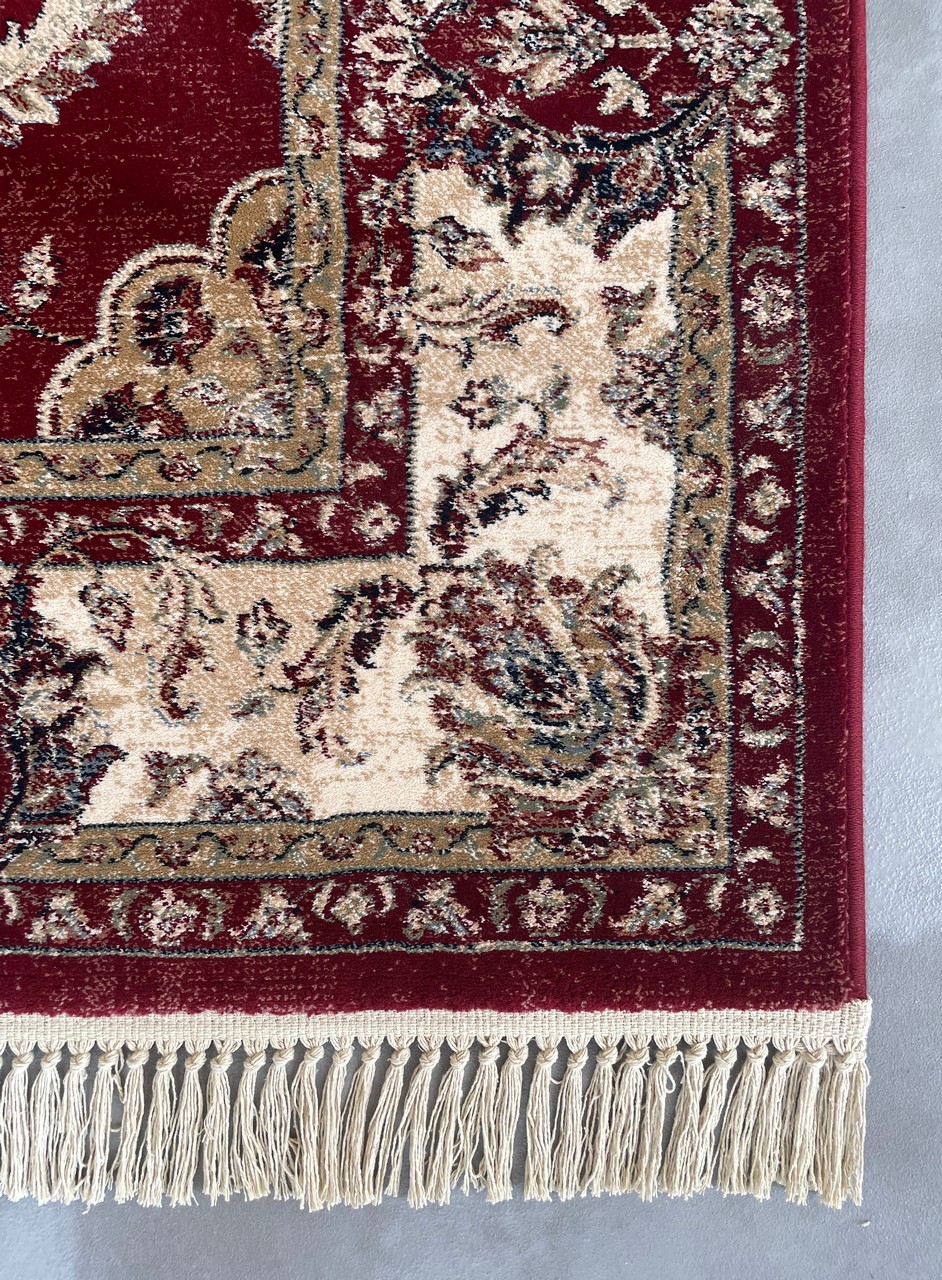 Χαλί μηχανής Βελγίου Da Vinci, του οίκου Ragolle, από 100% excellan pp, με αφή μαλλιού. Επώνυμο κλασσικό χαλί κορυφαίας αισθητικής, λόγω των ιδιαίτερων χρωματικών συνδυασμών και των προσεκτικά επιλεγμένου σχεδίου. Το φινίρισμα του χαλιού ολοκληρώνεται με βαμβακερό γαζωτό κρόσι με κομπάκι σε υπόλευκο χρώμα για ανθεκτικότητα στη χρήση