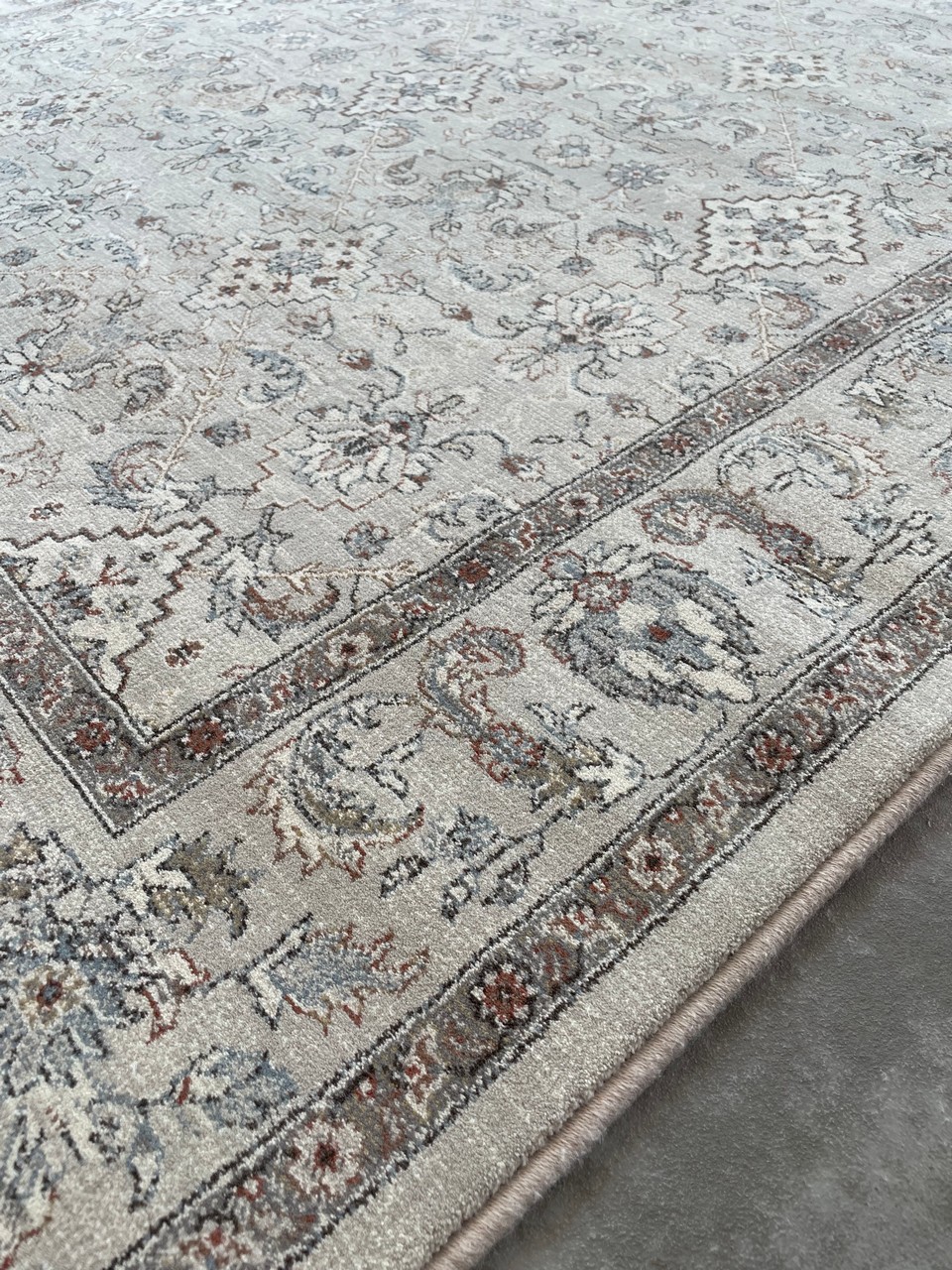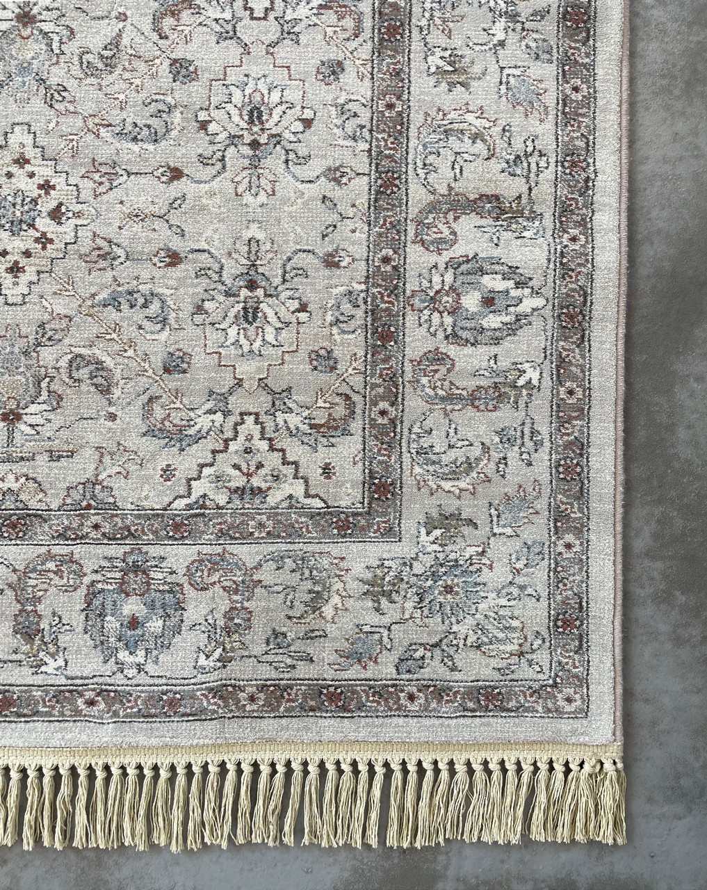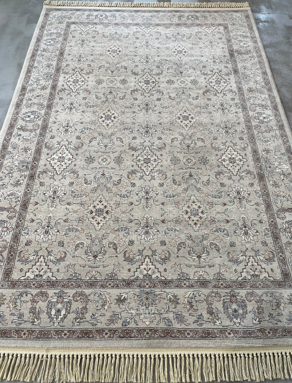 Χαλί μηχανής Βελγίου Da Vinci, του οίκου Ragolle, από 100% excellan pp, με αφή μαλλιού. Επώνυμο κλασσικό χαλί κορυφαίας αισθητικής, λόγω των ιδιαίτερων χρωματικών συνδυασμών και των προσεκτικά επιλεγμένου σχεδίου. Το φινίρισμα του χαλιού ολοκληρώνεται με βαμβακερό γαζωτό κρόσι με κομπάκι σε υπόλευκο χρώμα για ανθεκτικότητα στη χρήση