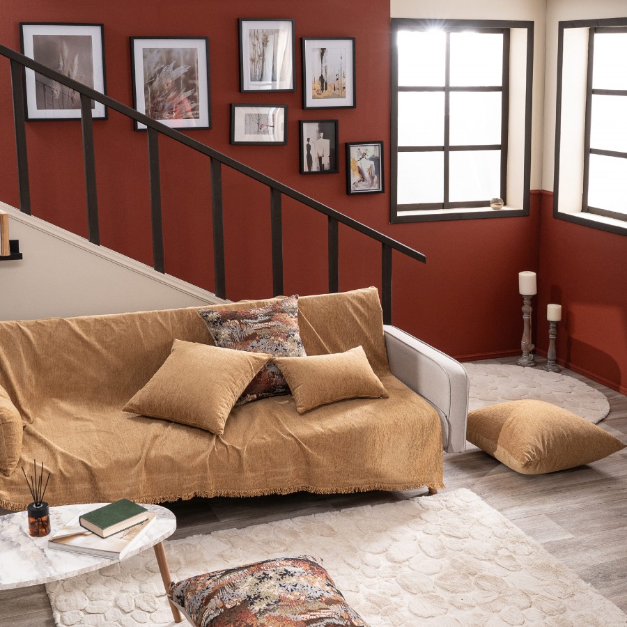 Τα υφάσματα υφαίνονται στην Ελλάδα από ελληνική υφαντουργία και μεταποιούνται από την εταιρία μας.Η σύνθεση του υφάσματος των ριχταριών αποτελείται από νήματα ακρυλικά σε ποσοστό 48%,βαμβακερά σε ποσοστό 30% και πολυεστερικά σε ποσοστό 22%.